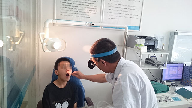 据老人介绍,孩子病了并不是没有去看过,而是去过不少家综合医院,但老不好,今年听村里人介绍说南京仁品医院不错,就趁着暑假带孩子过来治疗。南京仁品医院的鼻咽头颈外科主任王喜才为毛小翔看病。王喜才主任介绍:“经过德国wolf鼻内镜和鼻窦CT查看到:这孩子的鼻腔内慢性充血、清水样的分泌物,部分粘膜呈苍白色,双侧下鼻甲肥大、中鼻甲水肿、鼻中隔向右偏曲;右侧上颌窦炎症或囊肿,是典型的过敏性鼻炎、腺样体肥大。”